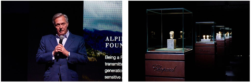 さらに、どのブランドにも欠かせないサステナビリティの取り組みについて「アルパイン イーグルでは、ルーセントスティール™という素材を初めて採用しました。これは80%がリサイクル素材から作られており、将来的にはショパールの全コレクションにこの素材を導入したいと考えています。ルーセントスティール™は、抗アレルギー性、光の反射性、耐摩耗性にも優れています。また、アルプスの保全活動を目的とした財団『アルパイン イーグル ファウンデーション』を設立。当初は野生のオジロワシをアルプスエリアに呼び戻そうという活動からスタートし、最近、最初の4羽のヒナが生まれました。このアルプスの保全活動から、地球が直面しているさまざまな問題へと取り組みを広げていくことが、今のショパールにとってとても大切です」と熱弁をふるいました。