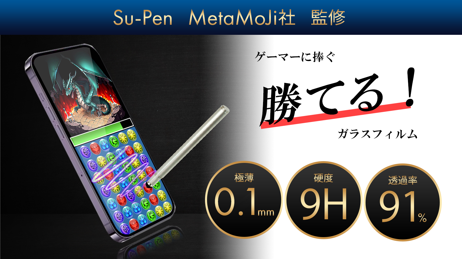 Su-PenのMetaMoJi社がタッチペンとの相性が良いと推奨しているゲームユーザー向けのガラスフィルム。