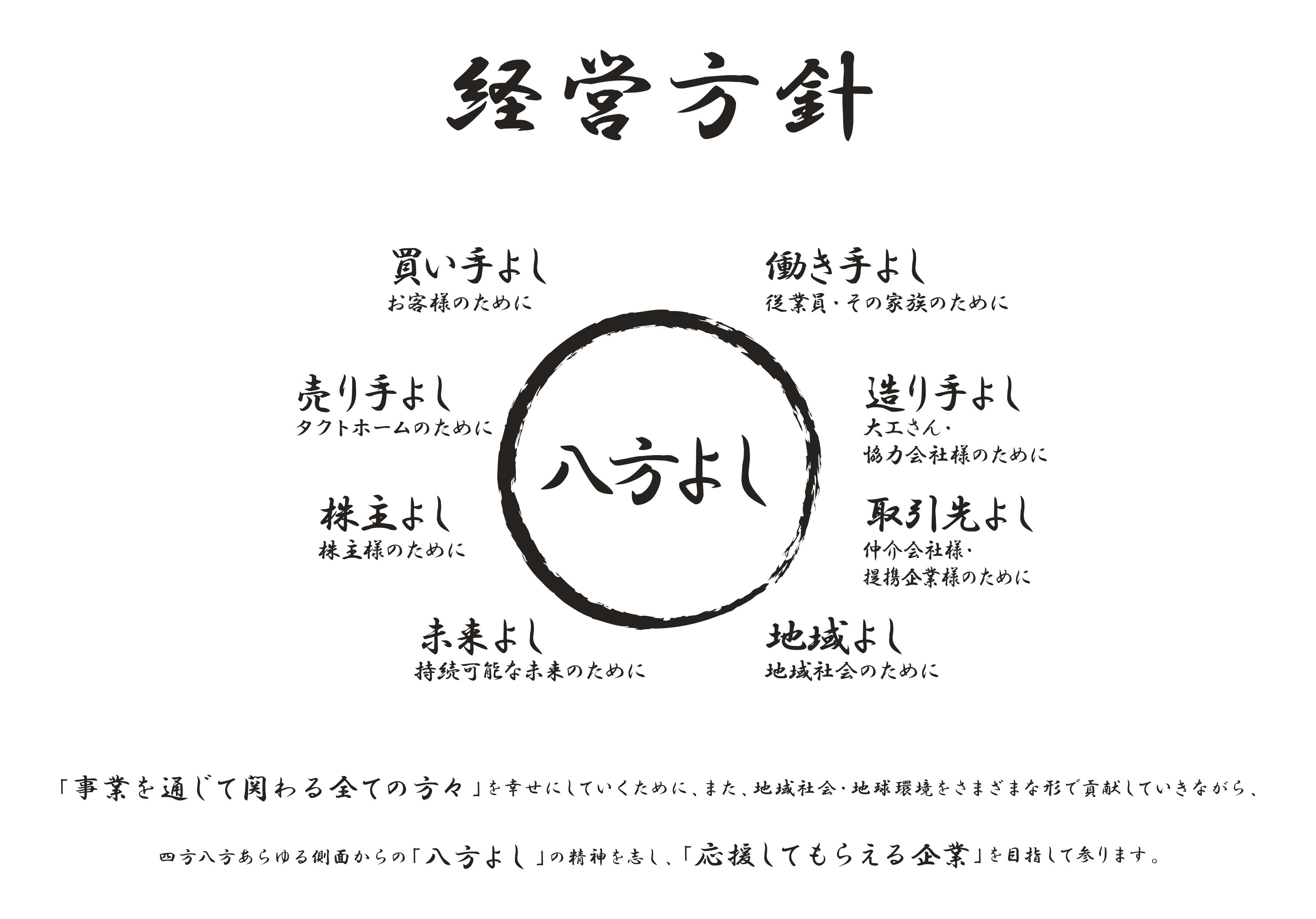 今後も様々な外的要因から従業員の生活を守り、経営方針にある「八方よし」の中の一つを担う「働き手よし」として、従業員・その家族のために、引き続き安心して働く事ができる職場環境を整備していき、改善し続ける事で、当社が提供するサービスの向上、ひいては企業価値を高め、「応援してもらえる企業」を目指して参ります。