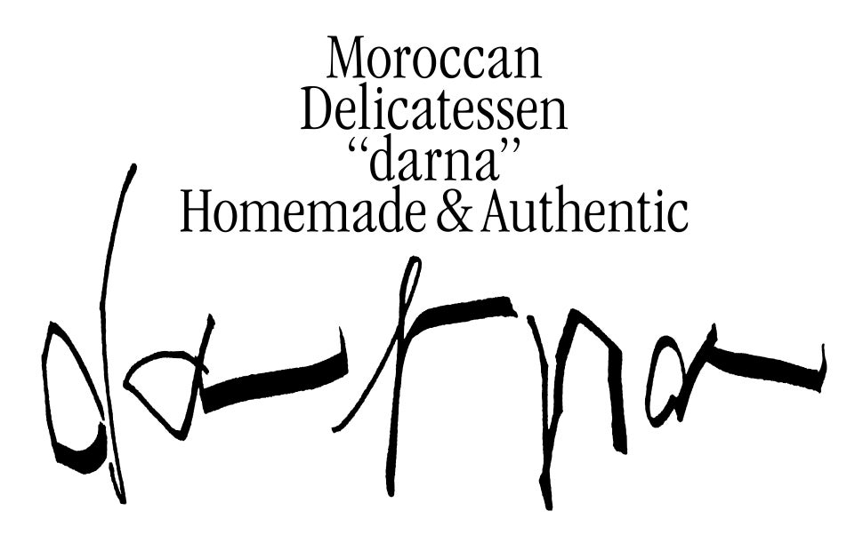 darnaのロゴは、カリグラフィの手法を使ってハンドライトしたデザインです。アラビア文字が持つユニークな造形をローマ字の中に取り込んだタイポグラフィで、モロッコが持つアラブの神秘的なイメージをモダンにアレンジして表現しています。