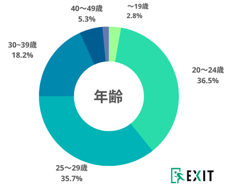 利用者への調査によると、Z世代のメイン層である20代の利用割合が年々上昇傾向にあり、勤続年数が3か月未満の退職者も年々増加していることが明らかになりました。また、調査によると、全体の59%がメンタルヘルスの不調が理由で退職しています。当社の退職代行サービス「EXIT」利用者の20代の場合は、早いうちに他社と比較し、より自分に合う会社へ転職するケースが多く見られます。