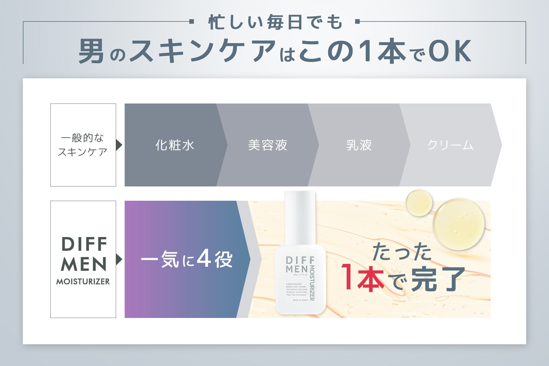 男性の「毛穴」「テカリ」悩みに。新感覚のオールインワン保湿美容液「DIFF MEN MOISTURIZER」