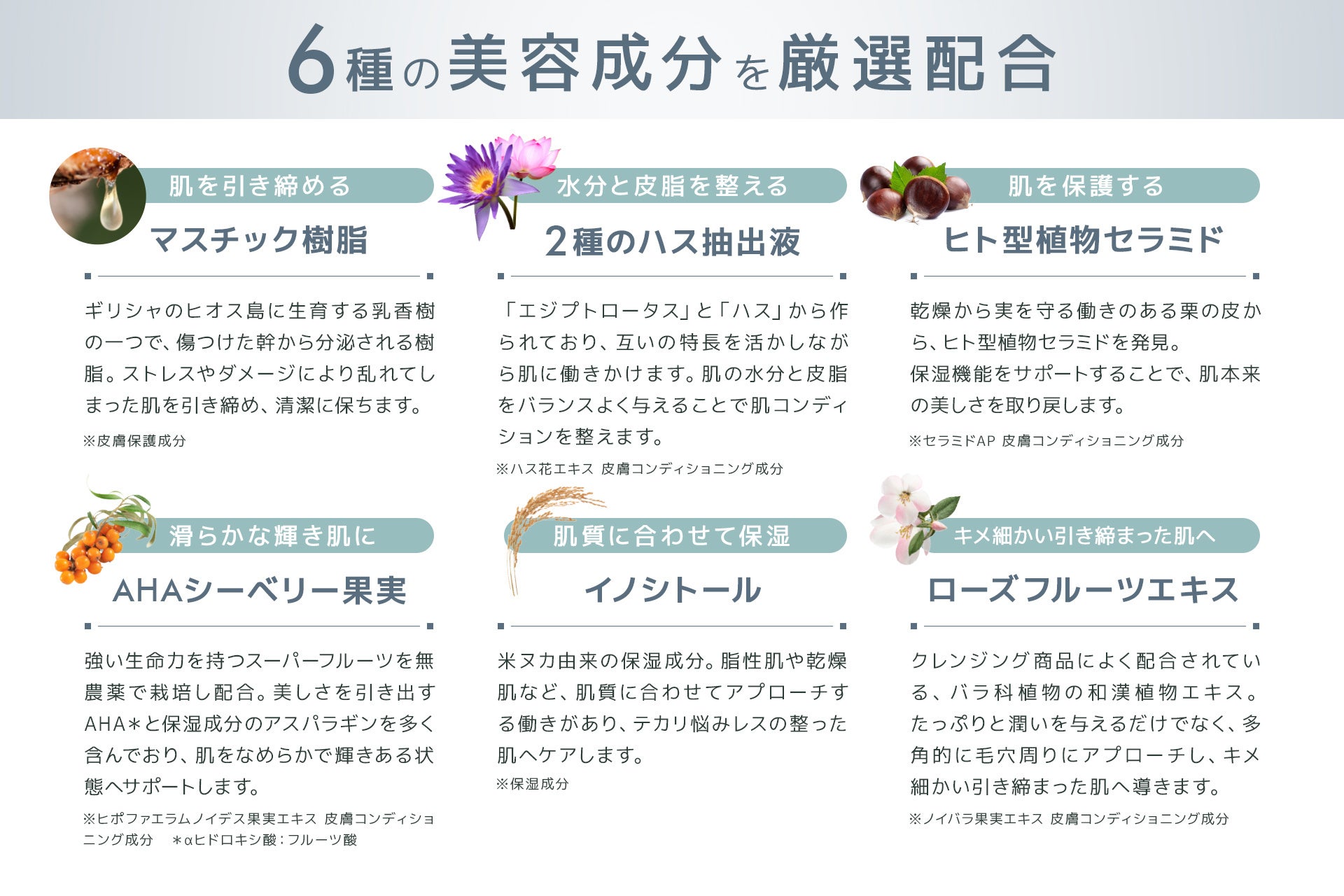 男性の肌悩みのために厳選した6種類の美容成分