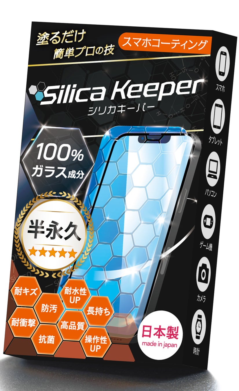 「シリカキーパー」は塗るだけで汚れや傷からスマートフォンの画面を守ってくれる商品です。ガラスフィルムと異なり、気泡が入って見た目を損ねることもありません。