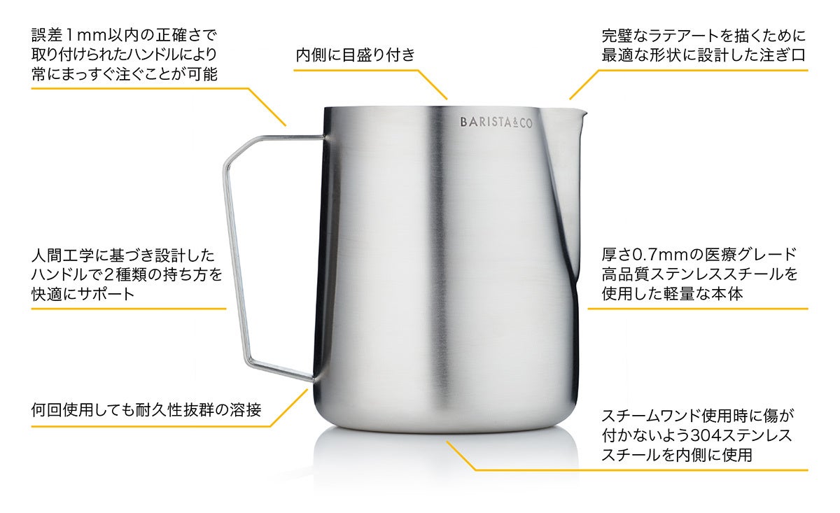 これからラテアートを始められる方からプロユースとしてまでお使いいただけるミルクピッチャーです。