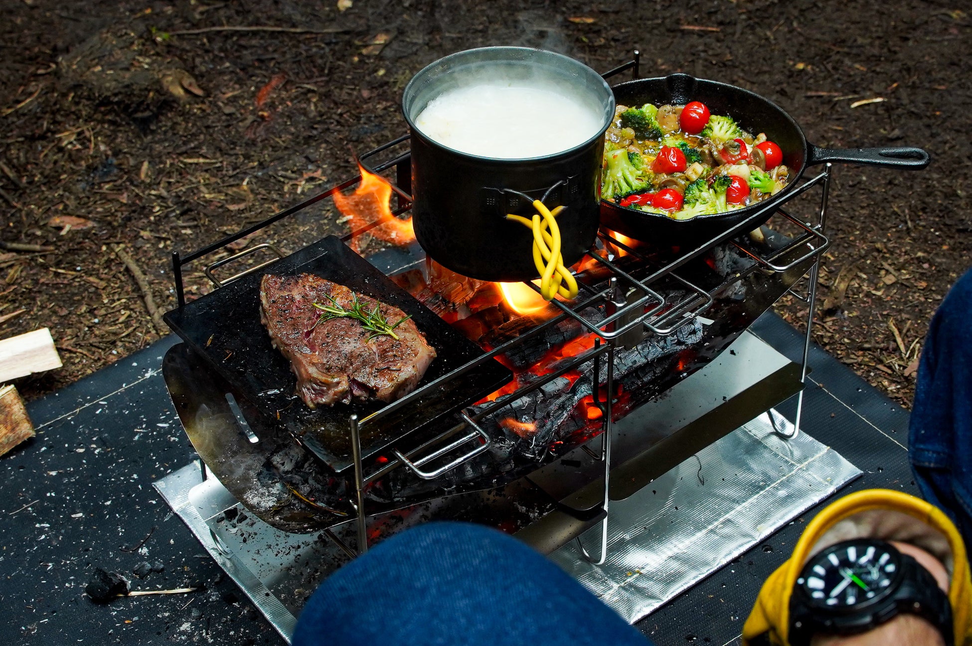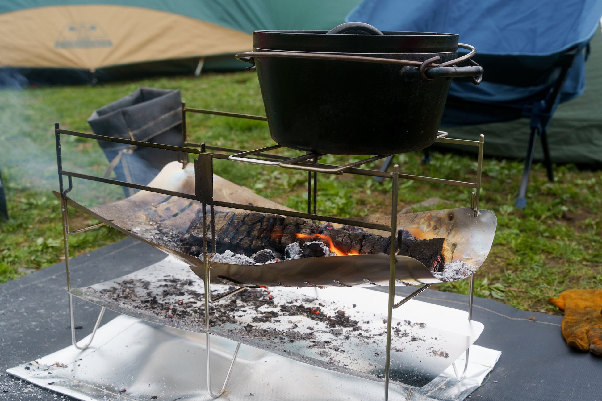 フレームが安定かつしっかりしているためダッチオーブンやスキレットも使用でき、ソロだけでなくデュオやグループでの利用もおすすめです。