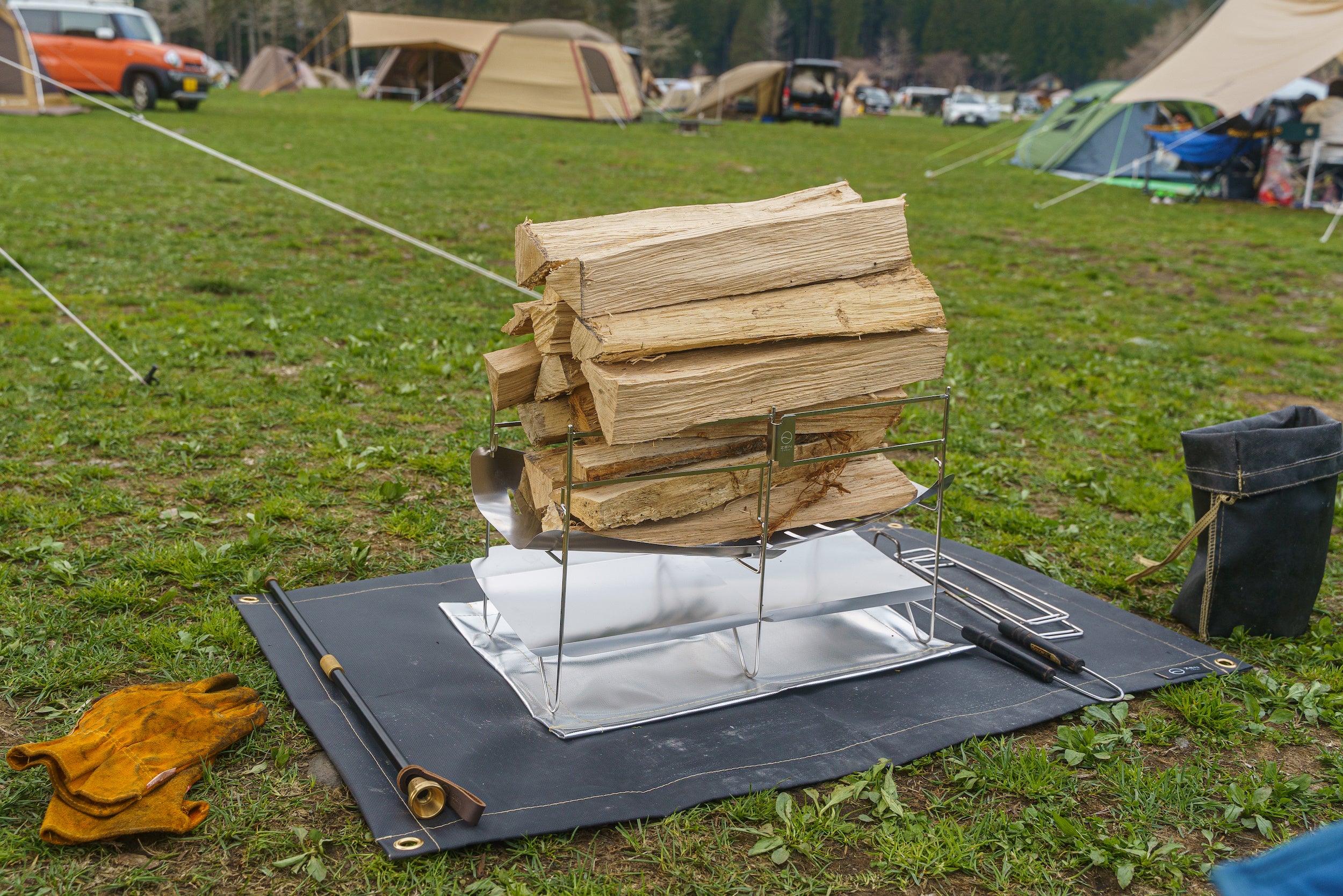収納時はコンパクトですが、火床の長さは約51cmあり、キャンプ場で売られているような薪であればはみ出る事はほとんどありません。