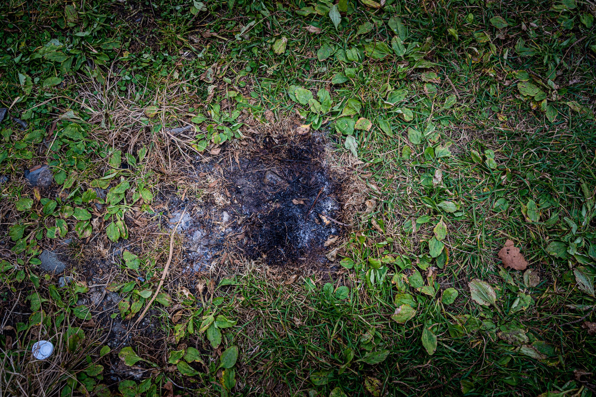 焚き火後は遮熱板、および火床に残った燃えカスを火消し袋(アッシュキャリー)に簡単に投入可能。自然に焚き火の跡を一切残しません。