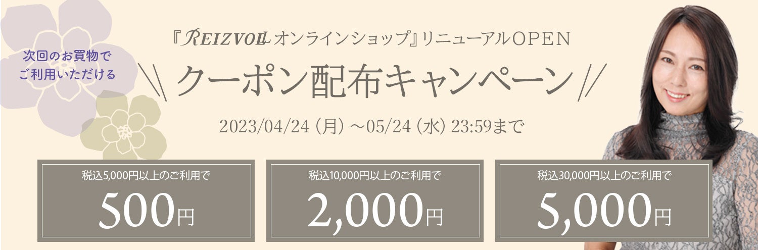 ■クーポン配布:上記期間中ライツフォルオンラインショップにて、税込5,000円以上お買い求めいただいた方に次回ご利用いただける割引クーポンを進呈(最大5,000円)