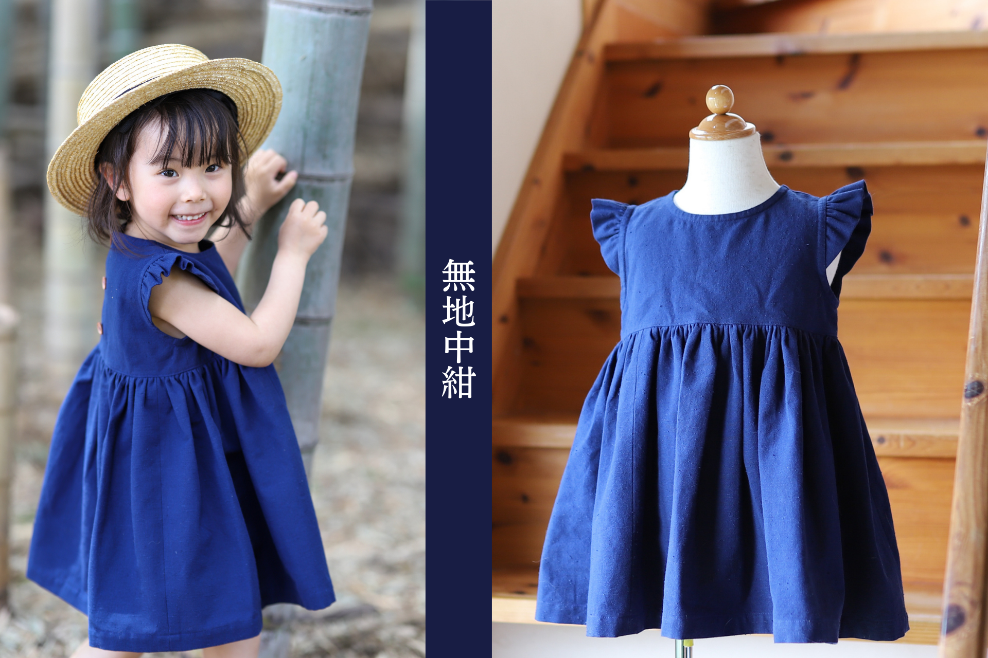 久留米かすりは一反12Mまたは13Mという「規格」があるため、12Mより短いと「規格外」として問屋に卸せなくなります。織り工程の前後で経糸(たていと)が切れたりとどうしても出てしまう「ハギレ」をKasuRekidsは使用しています。また、ワンピースを縫製する工程でもパートナーの縫製工場さんご協力のもと「生地の耳」を使うことで端切れを極力少なくしています。