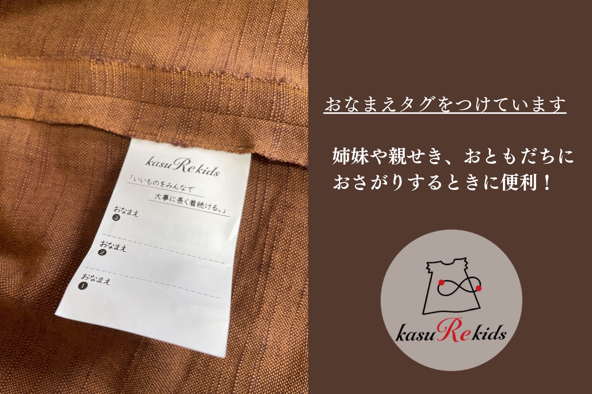 日本を代表する伝統的先染め織物の久留米かすりは30以上の工程の多くを手作業で行い、上品で丈夫な生地に仕上がります。そんな久留米かすりの自然素材、綿100%の厚手生地だからこそこども服の循環型経済が成り立ちます。