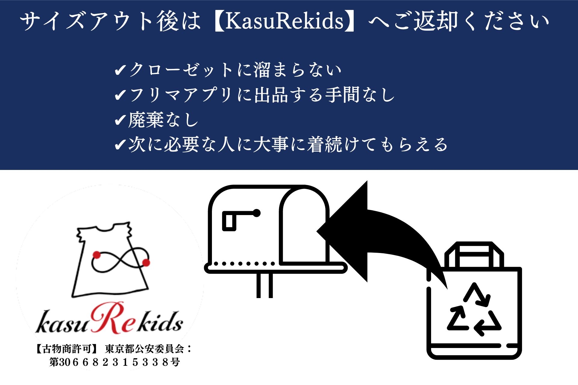 買取りサービス。サイズアウト後はKasuRekidsに返却!フリマアプリに出品する手間なし!