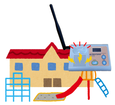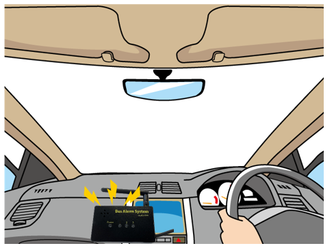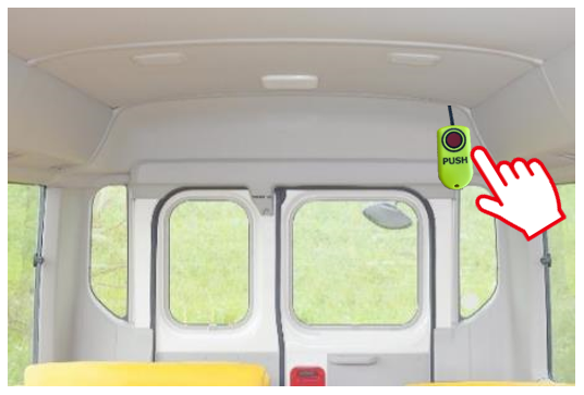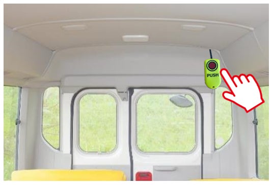 車両内のSOSスイッチを押すことで、園側受信機が光とブザー音で注意喚起を行います