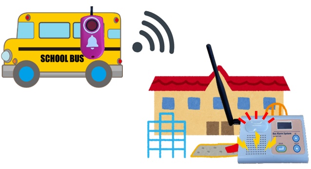 車両側本体から、職員室などに設置した園側受信機へ通信を行い