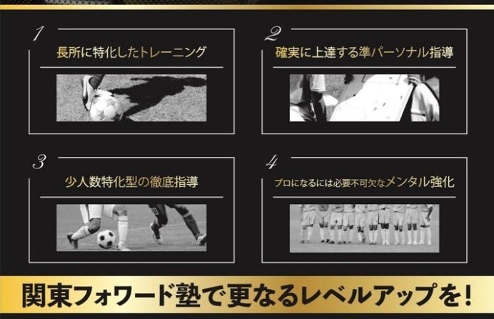 関東フォワード塾は、元Jリーガーからの直接指導を受けられる、少人数制のフォワード専門塾として2023年5月に開校いたしました。