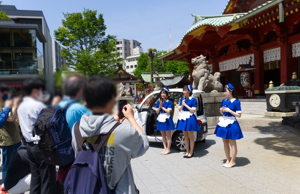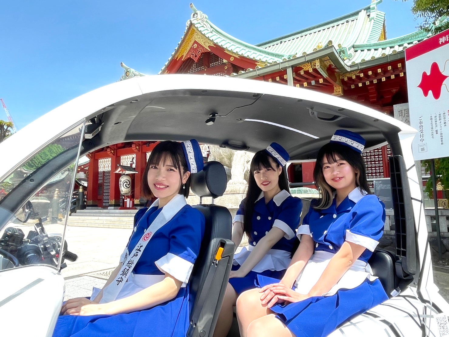 同日午前から午後にかけて27℃と夏をも感じさせる気温と快晴の中、Akiba.TV株式会社 が運営している旅行事業「Akiba Deep Travel」が実施している「EVトゥクトゥクツアー」と秋葉原アイドル「かるちべいと」のコラボツアー、成功祈願が神田明神にて開催された。