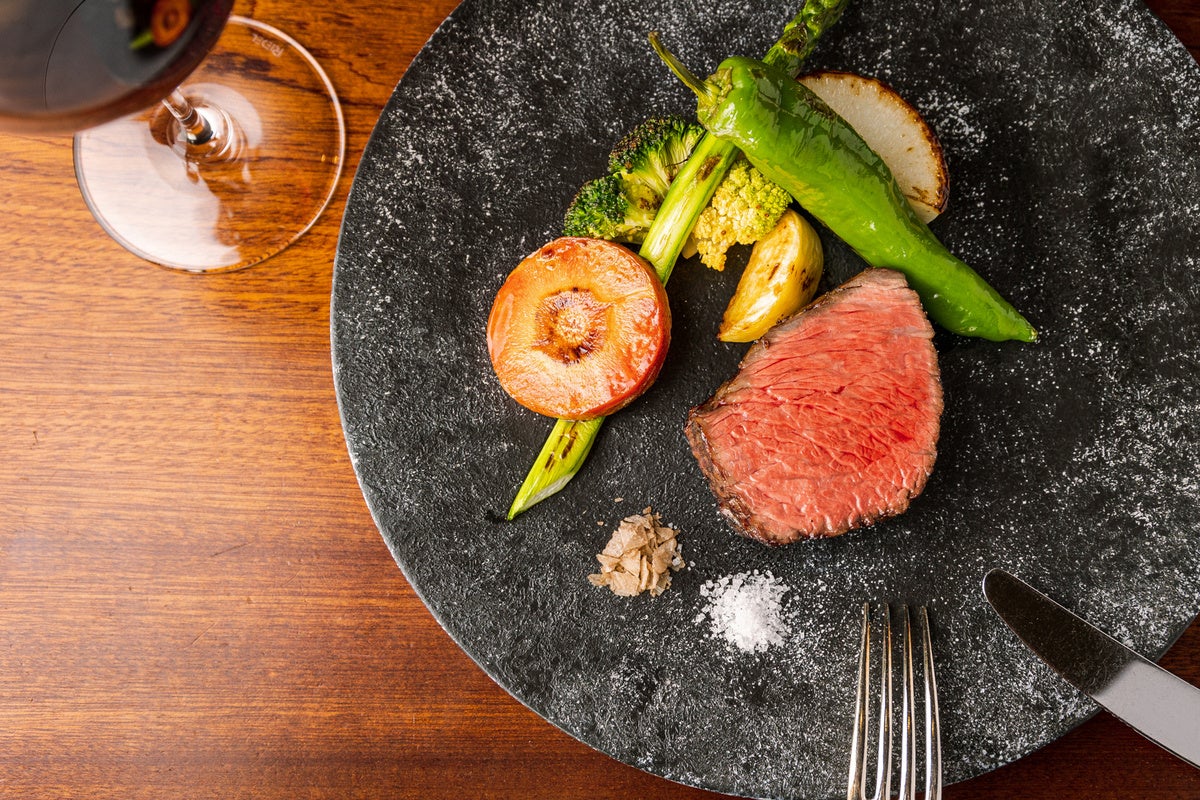 当店では「出来るだけ気軽に美味しくステーキを食べてほしい」との思いから、提供している牛肉は大谷翔平選手の地元でもある「いわて牛」を使用しています。ステーキ肉の本来の旨味を最大限引き出す為に炉窯効果を使い、肉や火入れにトコトンだわっており、素材そのままの味で召し上がってほしいので塩のみで提供しています。今回、更にメインに行くまでの一品一品まで気を使い、アミューズからパスタで徐々に味覚を高めていき、ステーキを食す際にピークへもっていく様に調理いたします。