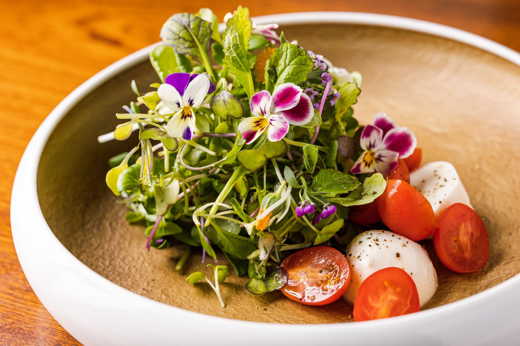 広島県梶谷農園のマイクロハーブを使ったサラダ カプリ風