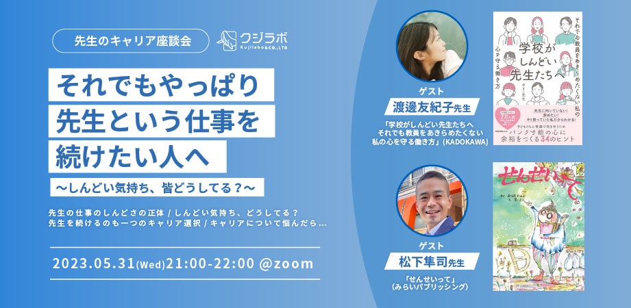 ~5月31日(水)21:00、「それでもやっぱり先生という仕事を続けたい人」をテーマに、先生自身のキャリアの選択肢を考える~