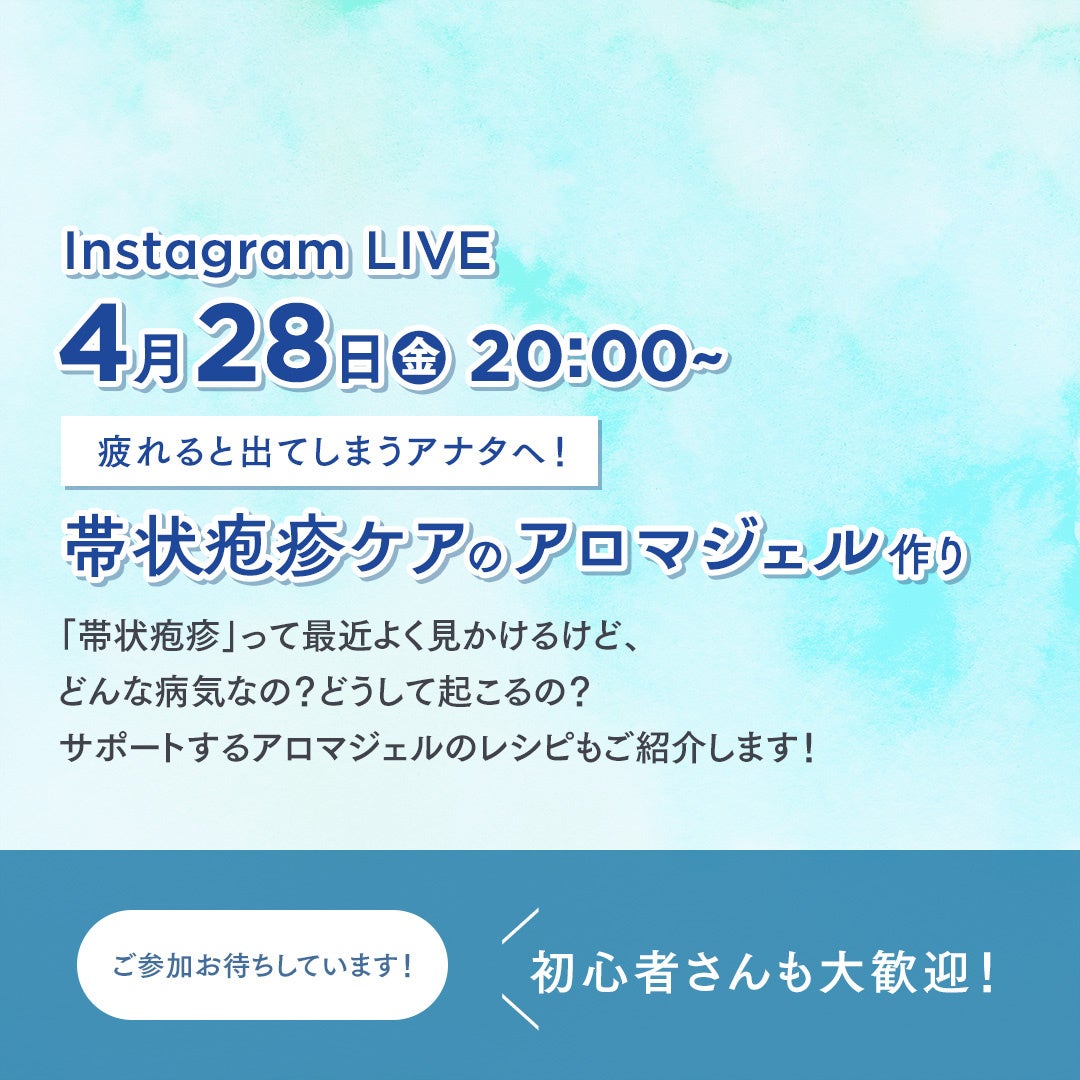 【東京都内のアロマスクール】帯状疱疹ケアのアロマジェル作りを紹介する無料の「メディカルアロマ」オンラインセミナーを4月28日(金)20:00~開催