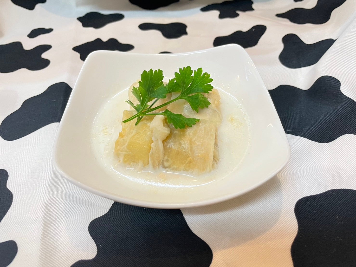 おでんの定番「大根」は独特の辛味がある野菜ですがその辛味がミルク出汁で和らぎ、普段のおでんよりまろやかな味わいに!