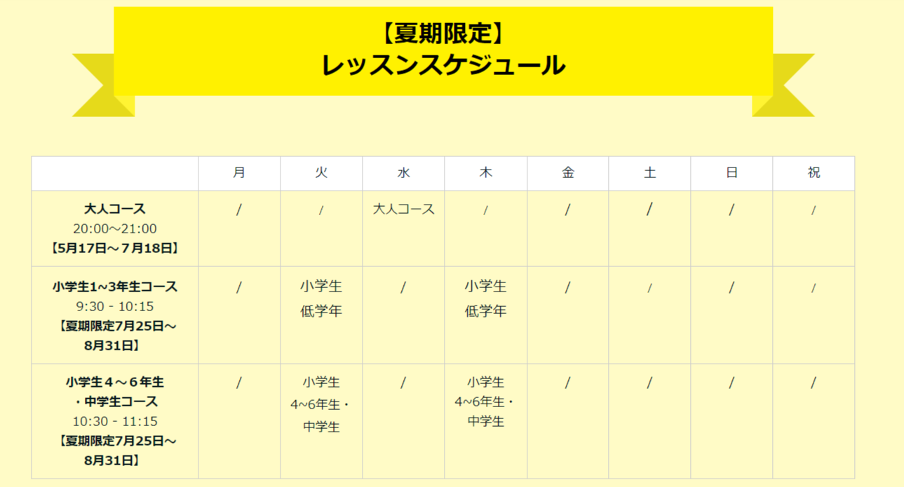 ※下記レッスンスケジュール