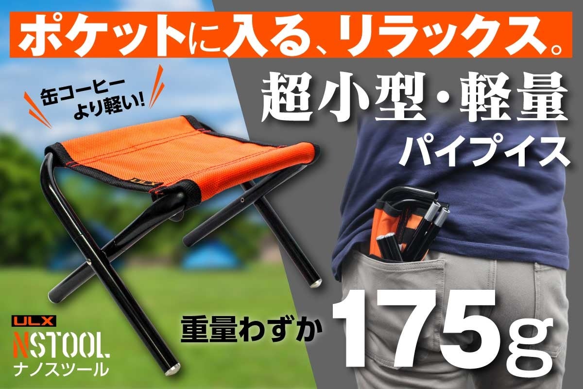 【アウトドア】わずか175g!缶コーヒーより軽いアウトドア用パイプイス『ULXナノスツール』8月28日(月)よりクラウドファンディングで先行販売開始!