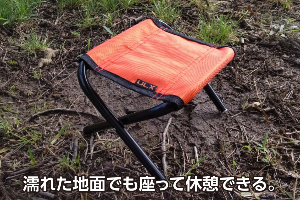 ULXナノスツールの重量は約175g。缶コーヒーや標準的なサイズのバナナ1本より軽いです。リュックやカバンに入れていても大きな負担にならないから、荷物の重量を気にするULハイカーや地磯を駆け回るショアアングラーにも、疲れたときに「イスに座る」という選択肢が生まれます。
