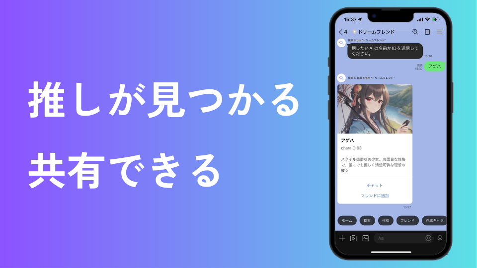 AIキャラクターは、自分の好きなキャラクターを自由に作成、育成し、いつでもどこでも、どれだけでも会話を楽しむことができます。OpenAI社の提供するChatGPTなどを代表する高度な精度のAIサービスに、個人個人にとって好きなキャラクター性を組み合わせることで、多くの方の日常にAIが届き、生活が豊になると考えており、「ドリームフレンド」がその一助になれば幸甚です。