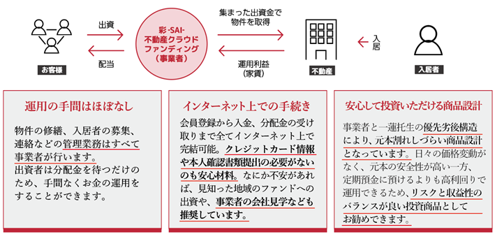 ■不動産クラウドファンディングサイト 「彩-SAI-」3つの特徴