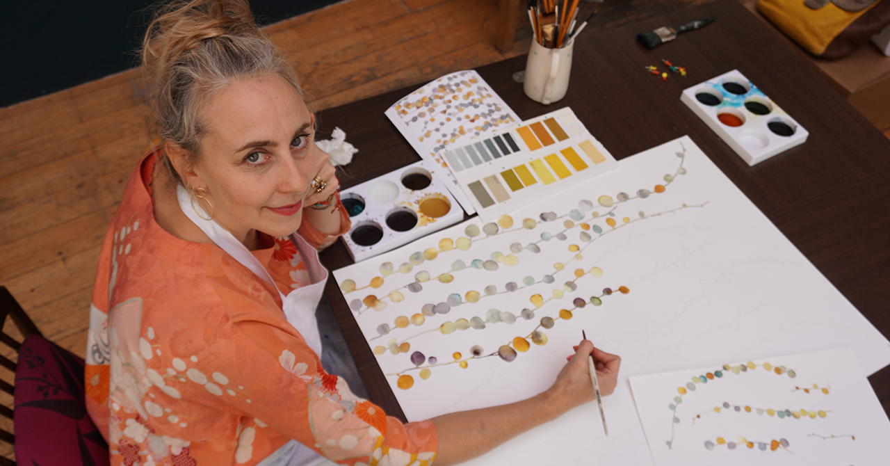 「イギリスの田舎町を散歩しながら興味深い植物や花を見つけ、カメラのシャッターを切ります。撮影した写真を基にムードボードやデザインパレットを作り、自然の色からみる季節の移り変わり、トレンドファッションや、読書、芸術、陶器美術、アート建築など、様々なソースから着想を得ています。