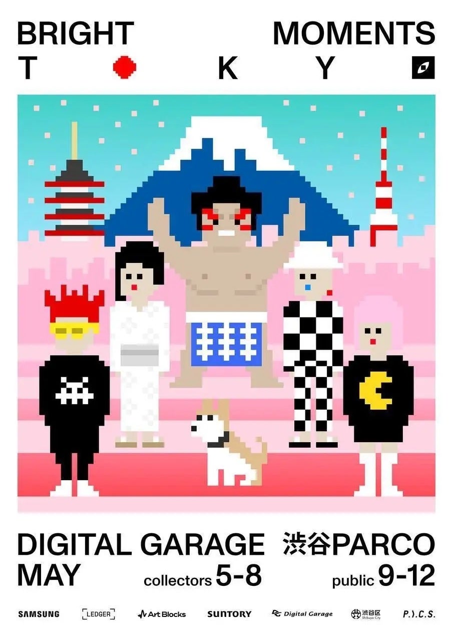 ベニスビーチ発祥のデジタルアートギャラリーで、これまでにLA、ニューヨーク、ベルリン、ロンドン、メキシコシティへと進出し、今回7か所目の開催場として東京の進出が決定された。組織は各都市で1000個ずつリリースされるCryptoCitizensというピクセルアートコレクションを保有するメンバーで運営されたDAO。コレクションを保有するとコミュニティーにへの参加権と発言権が得られる仕組みだ。そして今回のCryptoCitizensの東京コレクションは、「CryptoTokyoites Collection」と発表されている。Bright Momentsは独自のアイデアである「IRL Minting」を展開し、アーティストがデザインしたジェネレーティブアート作品がリアルな場所で初めて出会うというユニークな体験を提供してきた。これまでに世界各地のネットワークを活用して1万点以上のアート作品をIRL Mintingで展開した。