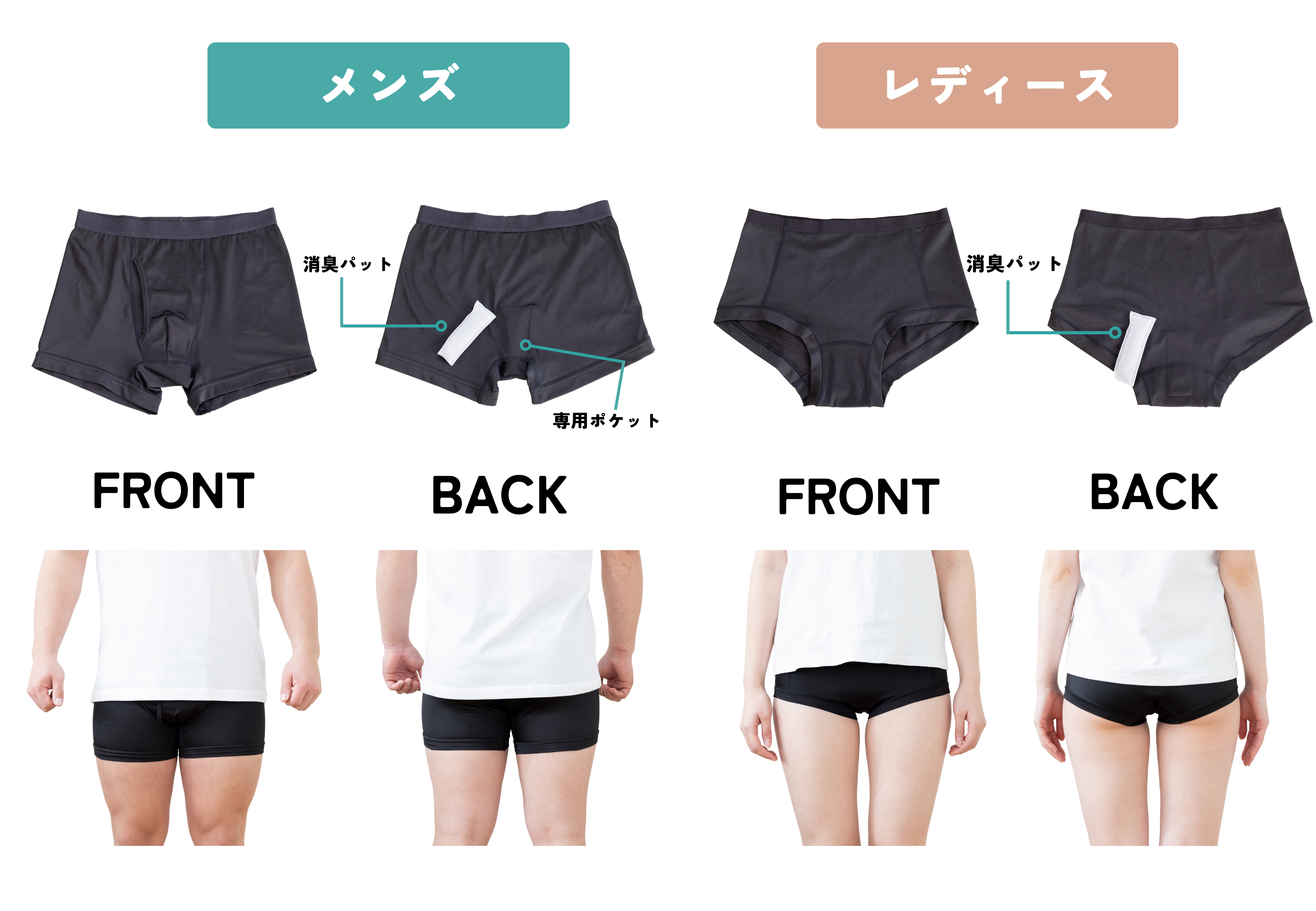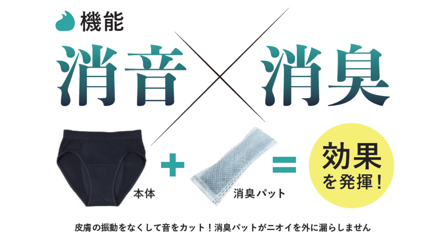 着座時に、おならの音とニオイを両方軽減する機能性パンツ。相談しづらい悩みを、隠すから乗り越える世界へ。