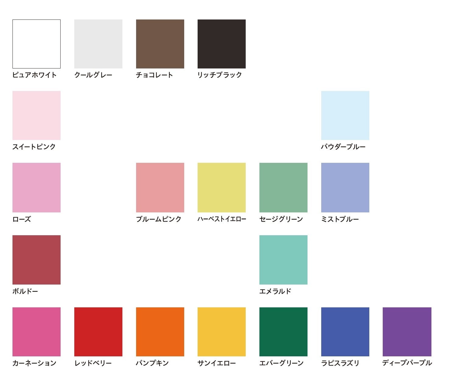 ファンシーペーパーから厳選した20色のカラーラインナップ