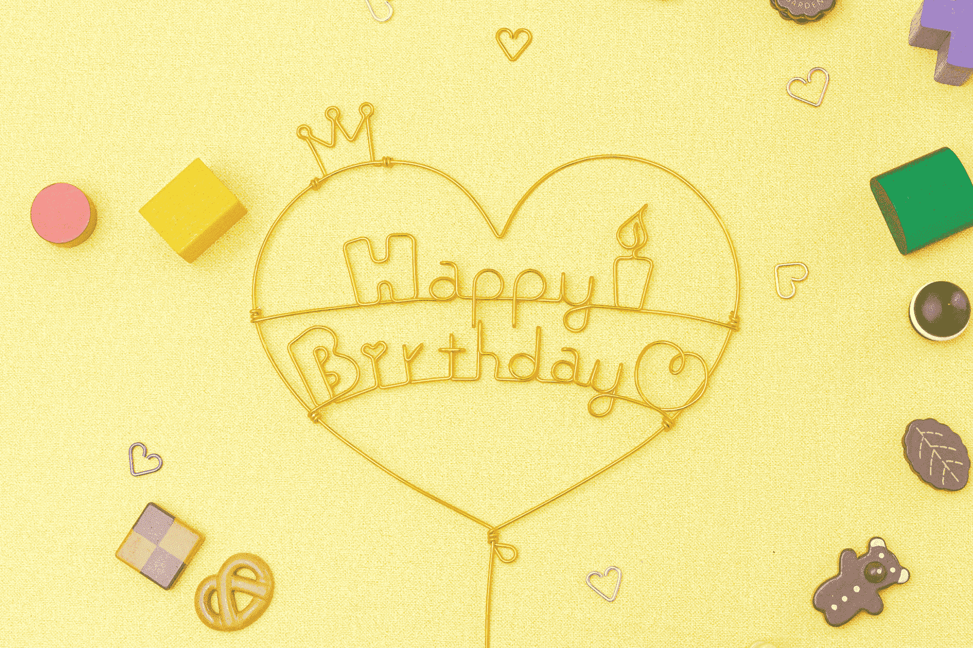 【Wire & Days -ワイヤーアンドデイズ-】の代表的な商品、1つ目は「ケーキトッパー」。お子さんの誕生日やクリスマスシーズンなどにとても人気です。真ん中のメッセージには好きな文字や数字を入れていただけます。いつものケーキに、このケーキトッパーを飾るだけで華やかで可愛らしい印象になるとともに、より楽しい時間を過ごしていただけるかもしれません。