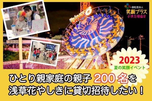 『夏の笑顔イベント2023』貧困のひとり親家庭の親子200名を貸切浅草やしきに招待し、特別な思い出を残したい!子供達100人親子で200人を笑顔にする!