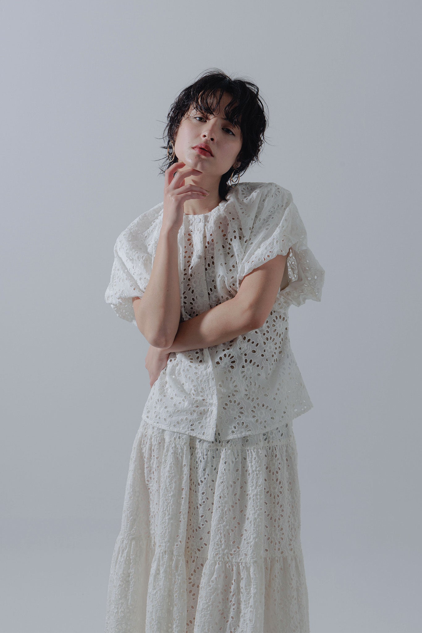 ブラウス¥9,900(税込)、スカート¥13,500(税込)
