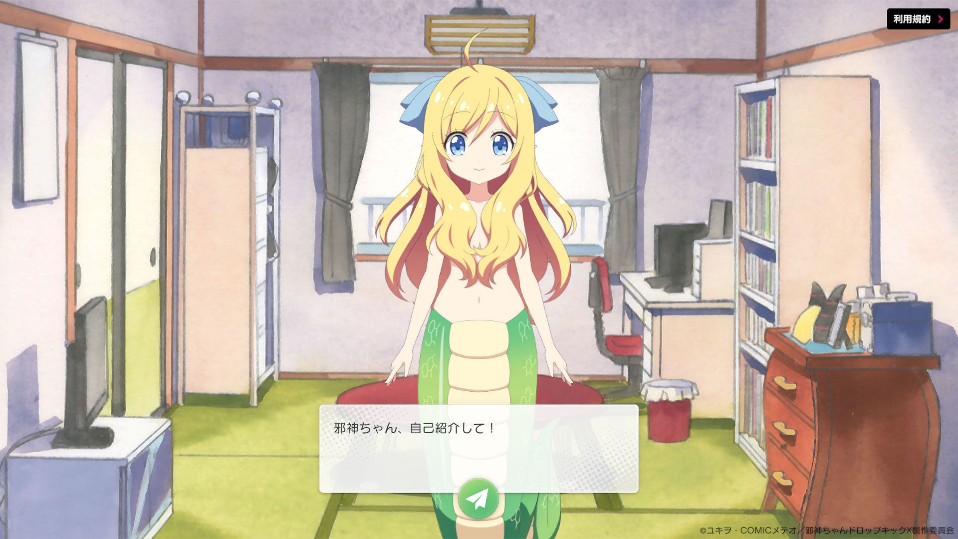 「邪神ちゃんロイド」は、邪神ちゃんに向けてメッセージを送信することで、リアルタイムにユニークな返信がくる、文字通り、邪神ちゃんとのリアルなコミュニケーションを楽しむことができるコンテンツです。