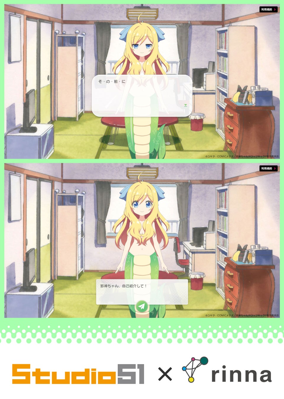 開発されたチャット会話システムは、rinnaのAI技術をベースに、邪神ちゃんのキャラクター性を忠実に再現していて、ファンの方はもちろん、誰でも「キャラクター×AI技術」の進化を実感できる仕上がりとなっています。