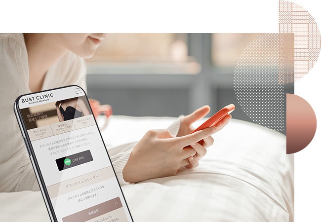 BUST CLINIC のキャッチコピーは「バストは、あなたを美しくする」。バストが美しくなることで自信を取り戻し、生き方そのものが魅力溢れるものへと変化を遂げる。そんな方々を1人でも増やしたいという願いが込められています。1人ひとりのご要望やお悩みに徹底的によりそって、その人に最適な解決策は何か、専門的な見地からご提案します。