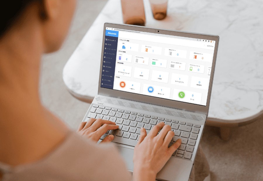 スマートインターホン機器はインターネットを介してクラウドサーバー上で管理しているため、現地に出向いて作業すること無くパソコンやスマートフォンにて現状確認、履歴管理や登録情報の変更が可能となっています。