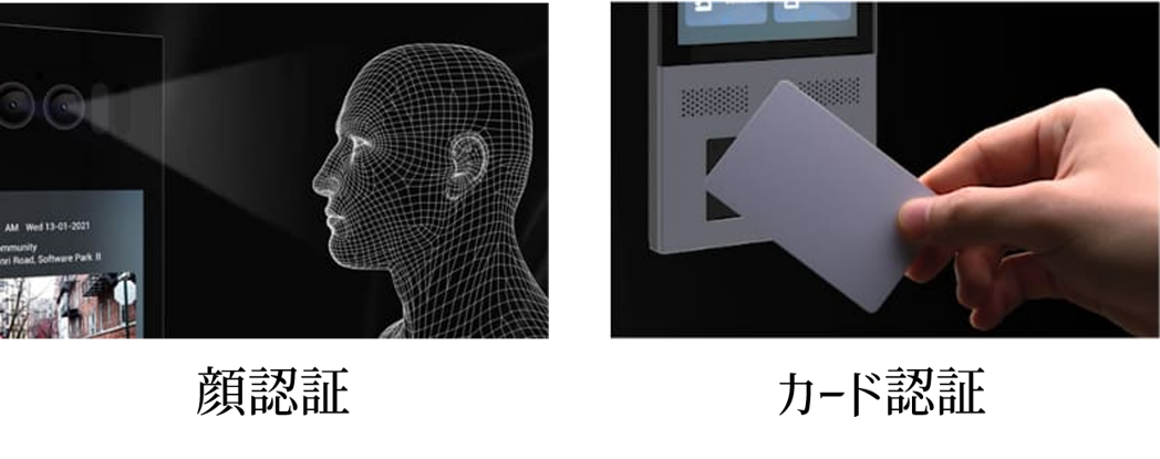従来の非接触キーとの連動やシリンダキーでの開錠だけではなく、顔認証やICカードキーでの開錠も可能(併用も可)。また、時限式の認証コード(QRコード等)を発行できるため、内見の際や新聞配達会社へ一時入館パス発行することも可能です。