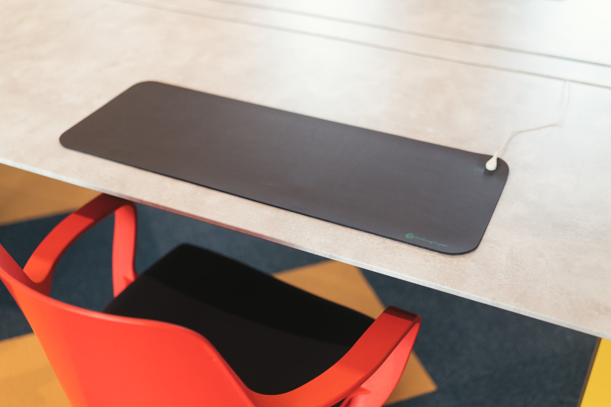 オフィスやショールームで裸足になる、というのは現実的ではありませんが、アーシングマットを設置したり、靴を脱いでくつろげるスペースを用意したり、人と電気との関わりについて日々模索を続けていきたいとの思いから導入しました。