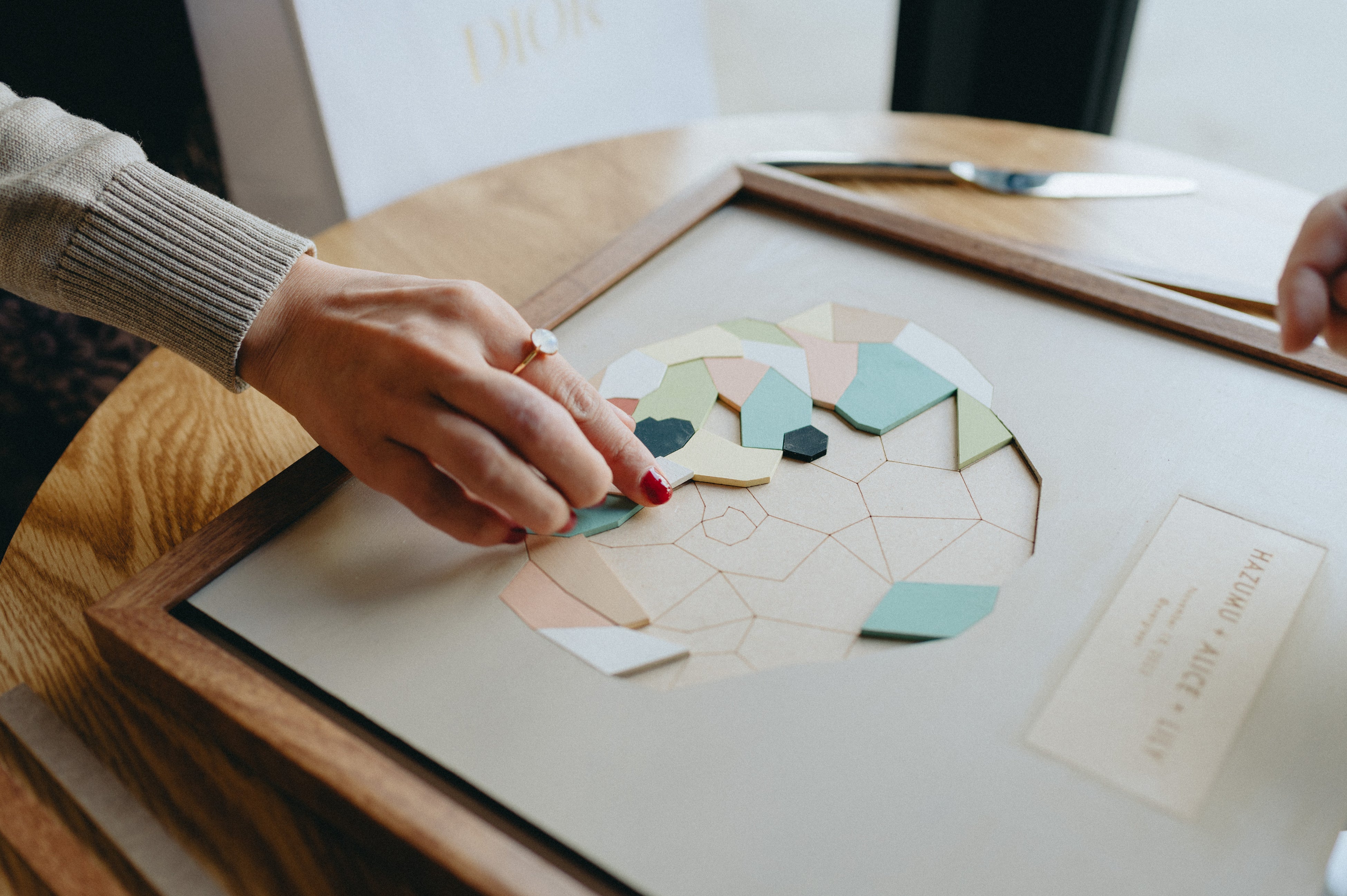 〜ご⼊場されたゲストの皆様に、結婚証明書のメインとなる愛⽝のパズルを作成してもらいます〜