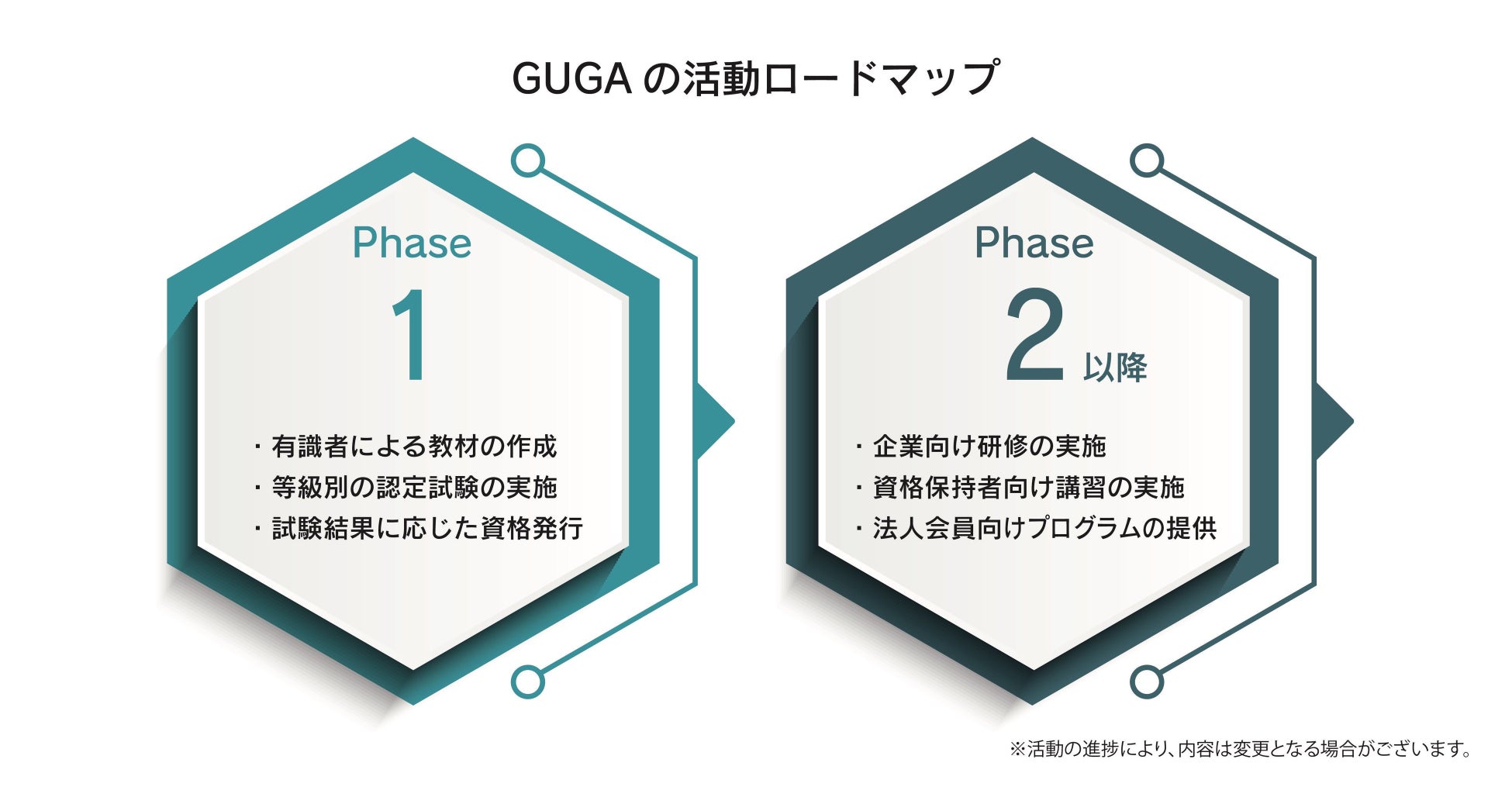 GUGAでは、生成AI活用の知識・スキルを可視化し、企業活動における普遍的なビジネススキルの一つとして社会実装することを目的とした活動に参画いただける企業さま・個人さまの募集を予定しています。コミュニティ内での意見交換や研修の受講、資金調達など、目的別の会員制度をご用意いたします。下記のフォームよりウェイティング登録していただいた方から優先的にご案内させていただきます。
