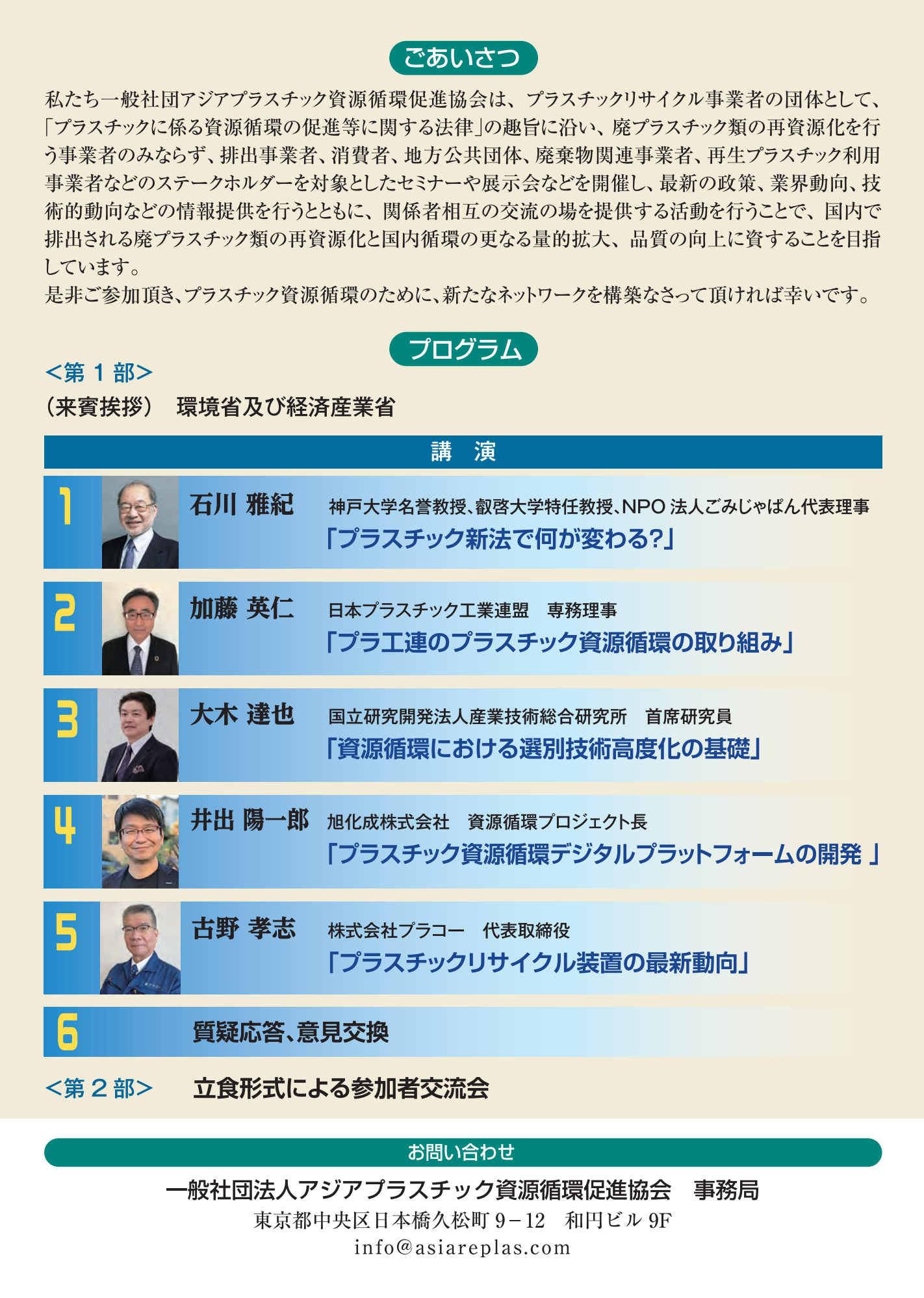 是非ご参加頂き、プラスチック資源循環のために、新たなネットワークを構築なさって頂ければ幸いです。