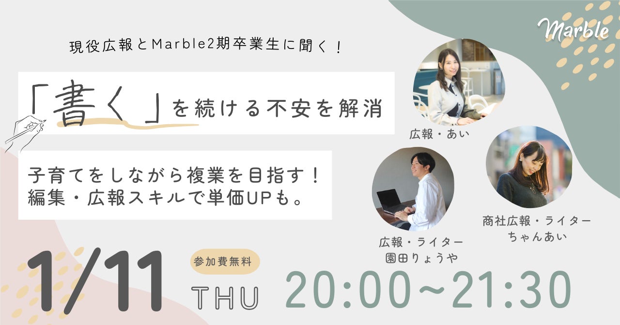 インタビュー・編集・広報のスキルを3ヶ月で習得。「書く」に特化したオンラインスクール「Marble」が3期生の募集を12月28日より開始