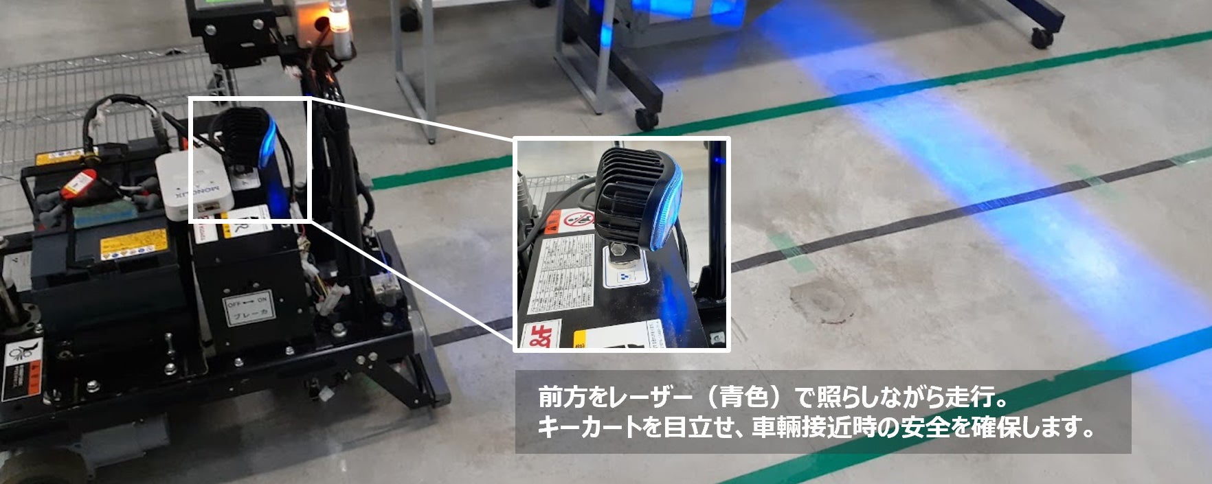 AGVの走行・停止に連動して青色LEDをレーザーで照射します。