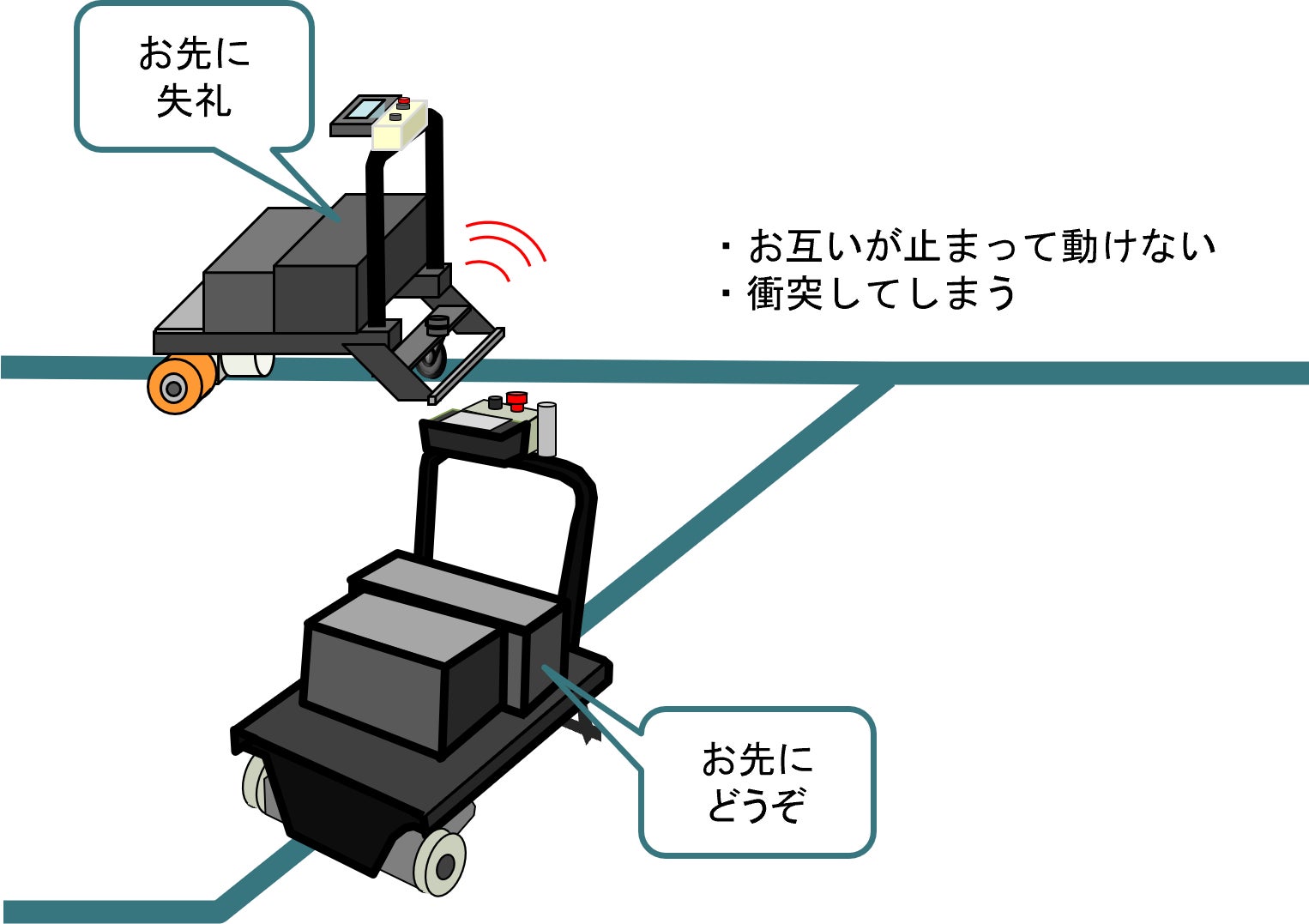 これらの機能により、キーカート同士が出合ガシラに停止してしまったり、防火シャッターに衝突することを回避できます。