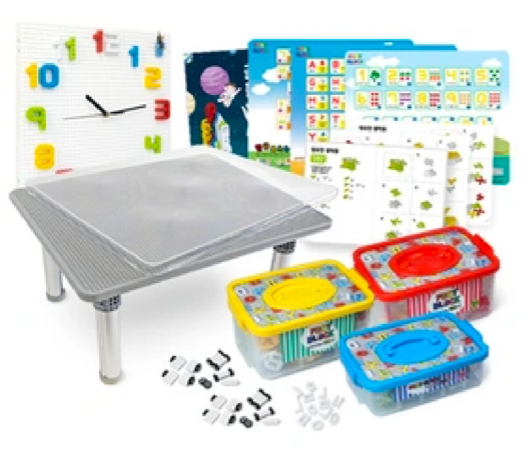 マスターセット(英語・数字&時計・ハングルセット)+マルチ遊びテーブルセット(マルチ遊びテーブル、学習シート3枚、透明カバー1枚、仕切りセット1個、補助カゴ2個)